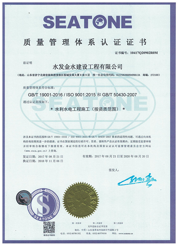 水發金水建設工程有限公司 三體證書-質量