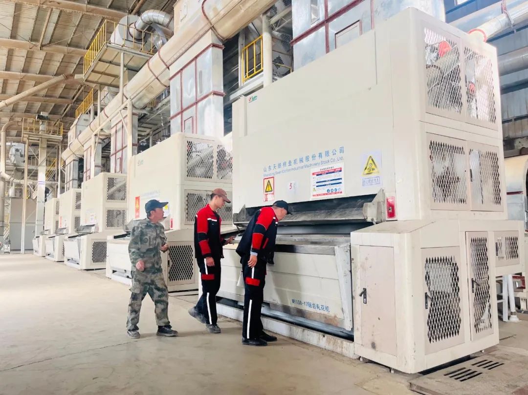 ▲軋花廠開秤在即,庫車水控雅克拉軋花廠廠長單厚增帶隊對車間設備檢修情況進行檢查。